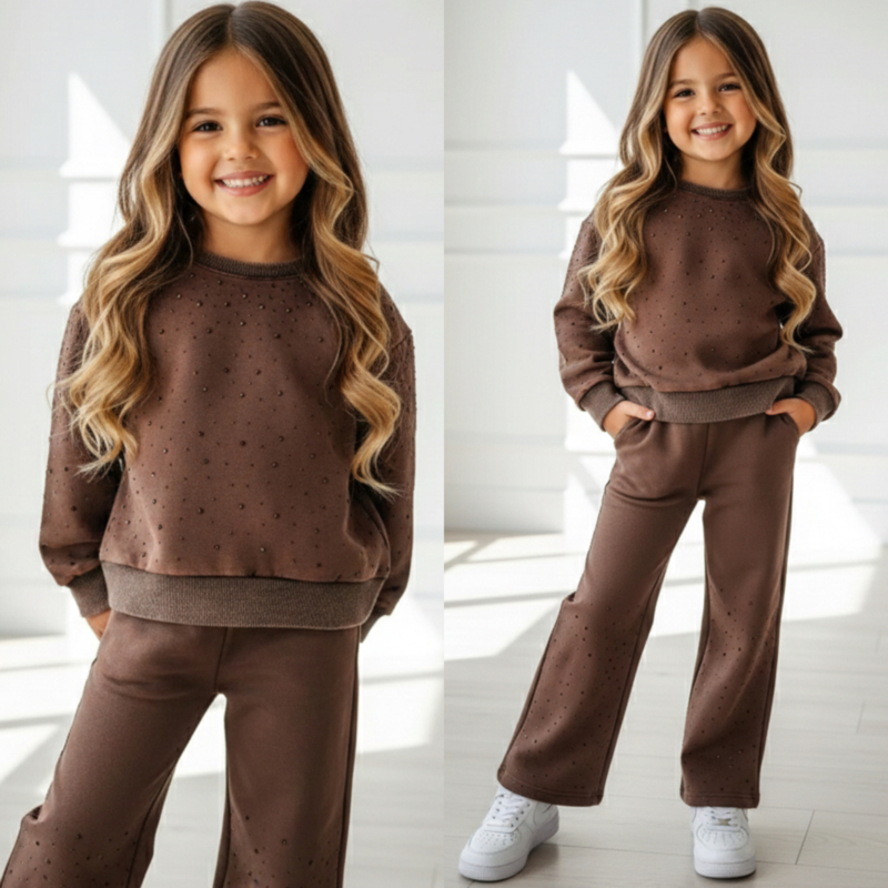 Het pak heeft een luxe uitstraling en is perfect voor feestjes, shoppen, schooldagen of relaxmomenten thuis. Combineer met sneakers of laarsjes voor een complete, trendy look.