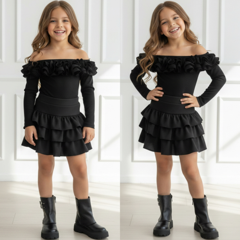 Artikelnummer: 70345 ww1 OverzichtDeze stijlvolle off-shoulder top is een echte eyecatcher voor meisjes die van mode houden. De top is gemaakt van een zachte, stretchy ribstof en heeft een speelse schouderband met prachtige ruffles voor een trendy en girly look. Dankzij de comfortabele pasvorm is hij perfect voor dagelijks gebruik, maar ook ideaal voor feestjes of speciale gelegenheden.