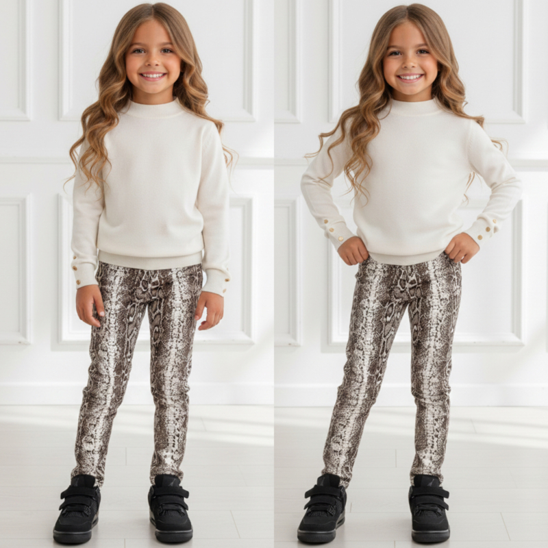 Artikelnummer: YX395 ww2 OverzichtMooie meisjes broek met slangenprint.