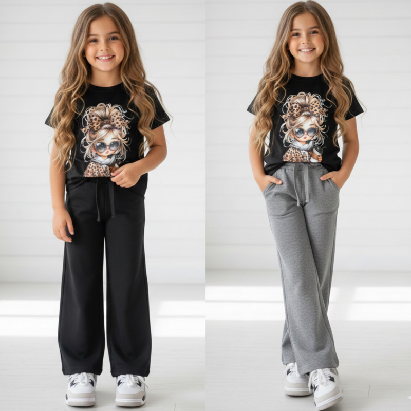 Artikelnummer: 666z ww2 OverzichtDit trendy zwarte T-shirt is een echte eyecatcher voor stijlvolle meiden! Op de voorkant staat een fashionable girl print met zonnebril, leopard strik en koffiebeker — helemaal in streetstyle vibe. De zachte stof en fijne pasvorm zorgen ervoor dat het shirt heerlijk comfortabel zit, perfect voor elke dag.