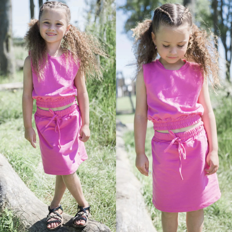 Artikelnummer: HN.21075 OverzichtDit vrolijke 2-delige zomersetje in felroze is perfect voor zonnige dagen! De set bestaat uit een mouwloos topje met elastische band aan de onderzijde en een comfortabel rokje met elastische taille en strikkoord. De zachte, soepele stof draagt heerlijk en geeft volop bewegingsvrijheid tijdens spelen, rennen en dansen.