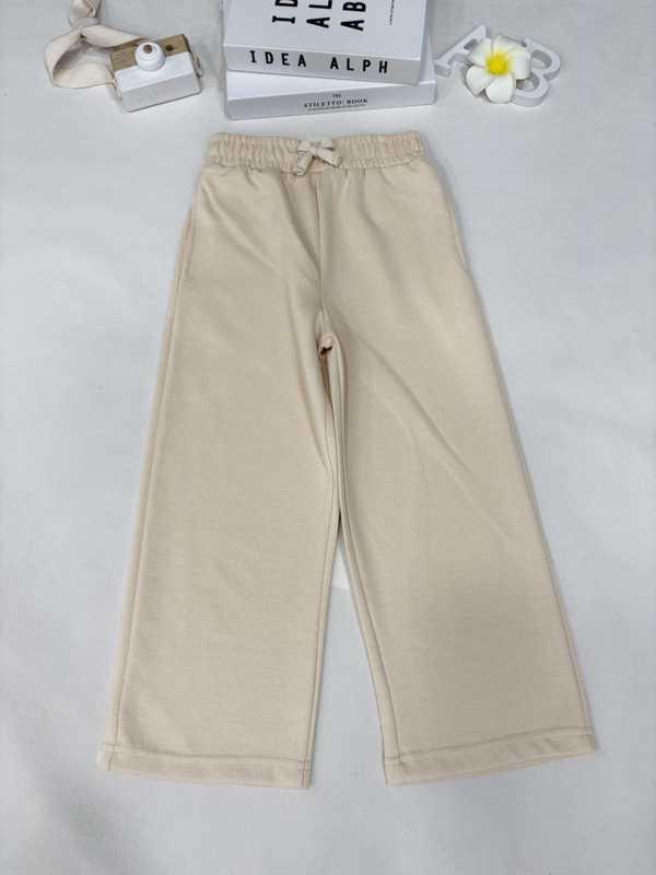Artikelnummer: LG.1268bw OverzichtDeze comfy wide leg jogger is ideaal voor meiden die houden van comfort én stijl! De broek heeft een elastische tailleband met aantrekkoord en een fijne, zachte stof die heerlijk draagt. De wijde pijpen geven de jogger een trendy look, waardoor hij net zo geschikt is voor school als voor een relaxte dag thuis.