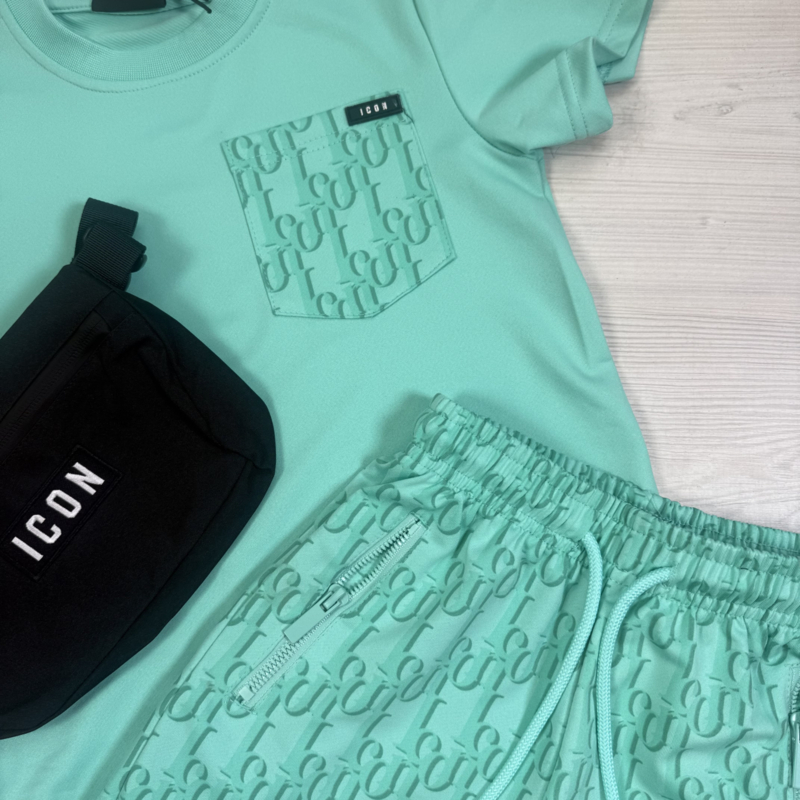 Artikelnummer: 1027m OverzichtSporty, stoer en mega trendy! Deze frisse mintgroene #icon Original short set is dé perfecte outfit voor kids die houden van comfort én streetwear stijl. De set bestaat uit een zachte T-shirt met een opvallend icon all-over borstzakje en een bijpassende short met dezelfde print voor een coole matching look.