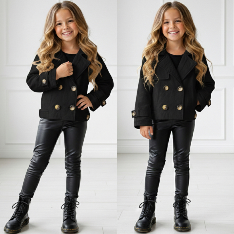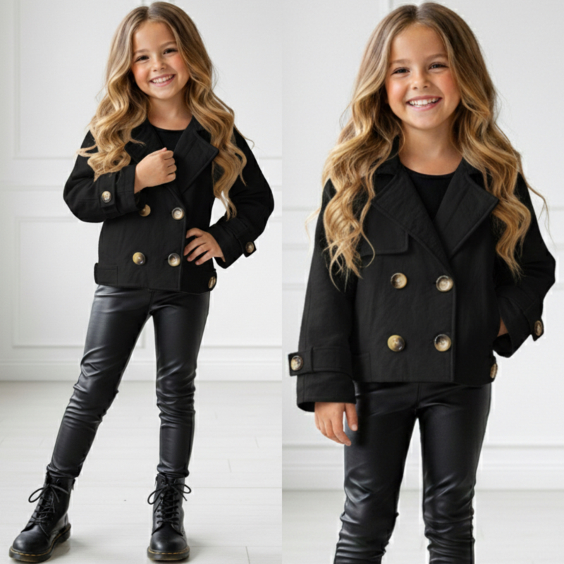 Artikelnummer: HN.0732z ww2 OverzichtDit zwarte meisjes jasje met goudkleurige knopen is dé perfecte combinatie van stoer en stijlvol 🖤✨