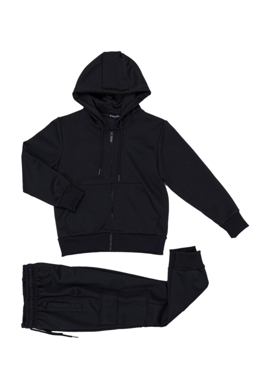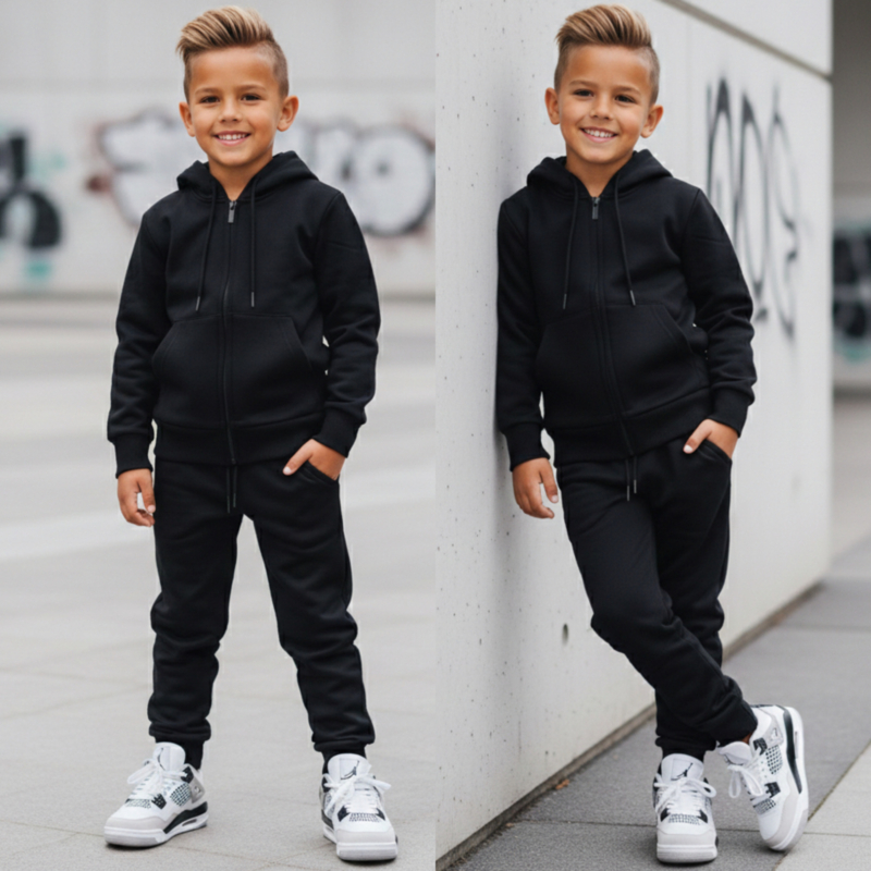 Artikelnummer: 846z bka ww2 OverzichtDe Essential Hoodie Set in zwart voor jongens is een echte must-have voor elke kledingkast. Deze tijdloze set bestaat uit een comfortabele hoodie met ritssluiting en capuchon en een bijpassende joggingbroek in een strakke all-black look.