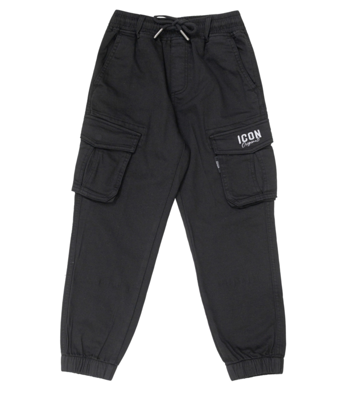 Artikelnummer: 1098z OverzichtDeze stoere ICON cargo jogger voor jongens in zwart is een echte must-have voor elke kledingkast. Dankzij het tijdloze design en de sportieve pasvorm is deze broek eindeloos te combineren.