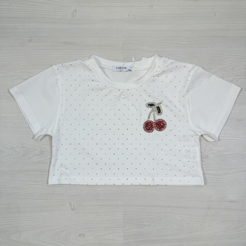 Cherry bling top - wit