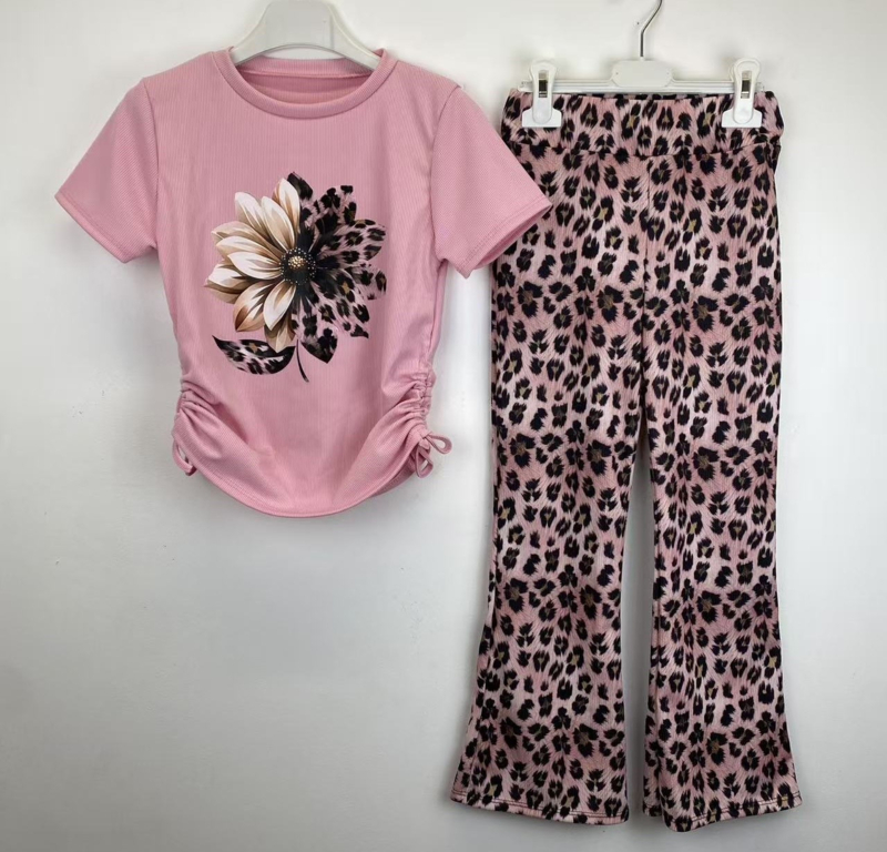 Artikelnummer: HN.2267r OverzichtDeze trendy meisjes set met leopard print en bloemen top is een echte eyecatcher. De set bestaat uit een zachte roze top met een grote bloemprint met leopard details en een bijpassende flared broek met leopard print. De speelse combinatie van bloemen en panterprint zorgt voor een modieuze en stoere look.