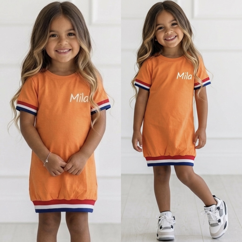 Het oranje shirt met zwarte details geeft de set een opvallende en sportieve uitstraling. De bijpassende oranje short met zwarte accenten maakt de outfit compleet en zorgt voor een stoere sportlook. Dankzij de comfortabele pasvorm kan je kind er heerlijk in bewegen tijdens het spelen, sporten of buitenspelen.