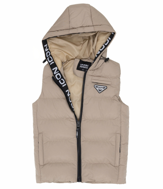 Artikelnummer: 1660b OverzichtDeze stoere ICON bodywarmer voor jongens is een echte must-have voor een trendy streetwear look. De bodywarmer heeft een moderne beige kleur en opvallende ICON details langs de capuchon, wat zorgt voor een sportieve en herkenbare uitstraling.