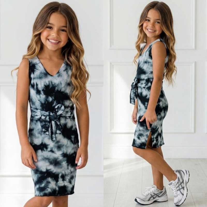 Artikelnummer: LG.YY195 OverzichtDeze trendy meisjes jurk is een echte must-have voor fashion lovers! De jurk heeft een stijlvolle tie dye print en een aansluitende ribstof die zorgt voor een mooie pasvorm.