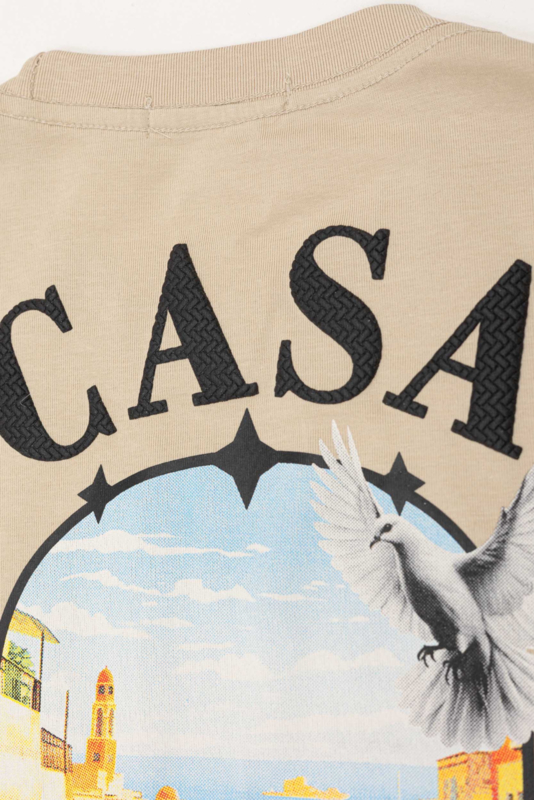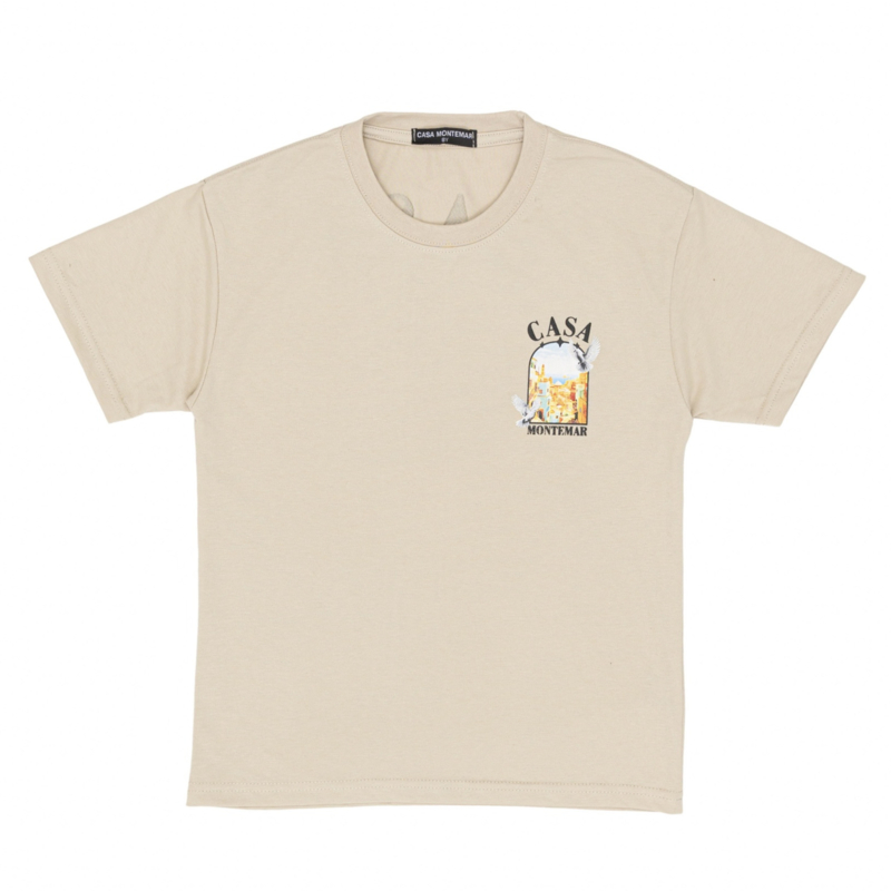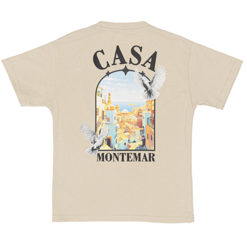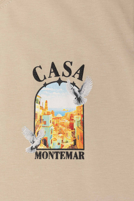 Artikelnummer: 1710b bka OverzichtDit beige CASA Montemar T-shirt voor jongens is een echte blikvanger voor de zomer. Op de achterkant staat een grote kleurrijke print van een mediterrane kuststad met duiven en de tekst “CASA Montemar”, wat het shirt een trendy vakantie-achtige uitstraling geeft. Op de voorkant staat een subtiele bijpassende print op de borst.