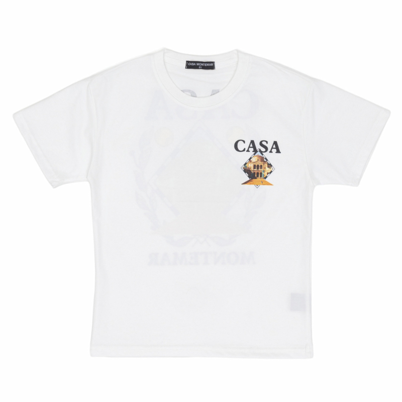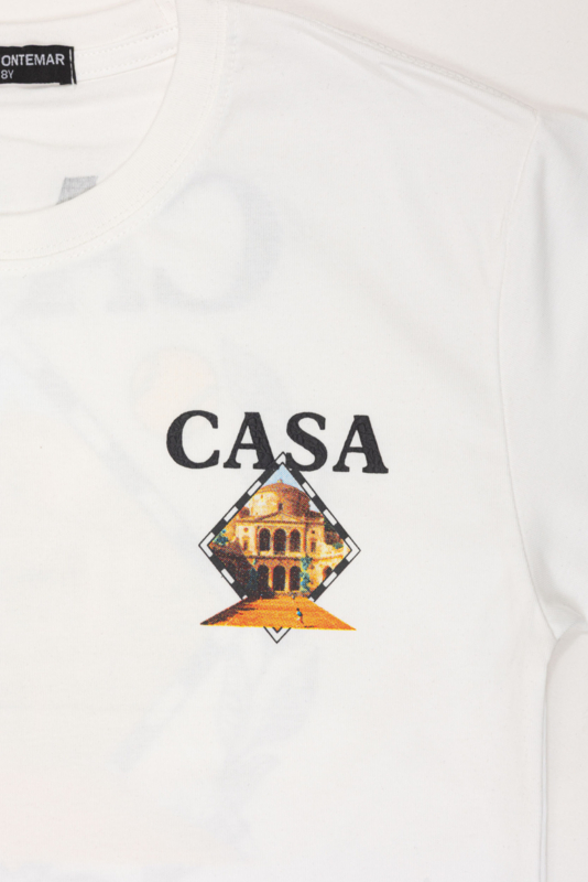 Op de voorkant staat een kleine CASA print op de borst, waardoor het shirt een minimalistische voorkant en een opvallende backprint heeft. De witte kleur zorgt voor een frisse look en maakt het T-shirt makkelijk te combineren met jeans, korte broeken of cargo shorts.