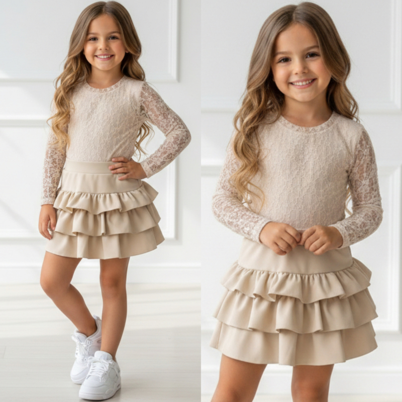 Perfect voor feestjes, vakanties, familiedagen of een stijlvolle schooloutfit. De set kan samen gedragen worden voor een complete outfit, maar ook los gecombineerd worden met andere kledingstukken.
