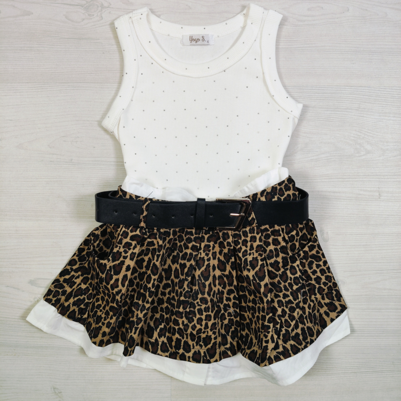 Artikelnummer: LG.YY3348 OverzichtDeze trendy meisjes set met panterprint bestaat uit een stijlvolle top en een bijpassende skort (rokje met broekje). De combinatie van de elegante top met subtiele glinsterende steentjes en het stoere leopard rokje zorgt voor een perfecte mix van chic en trendy.