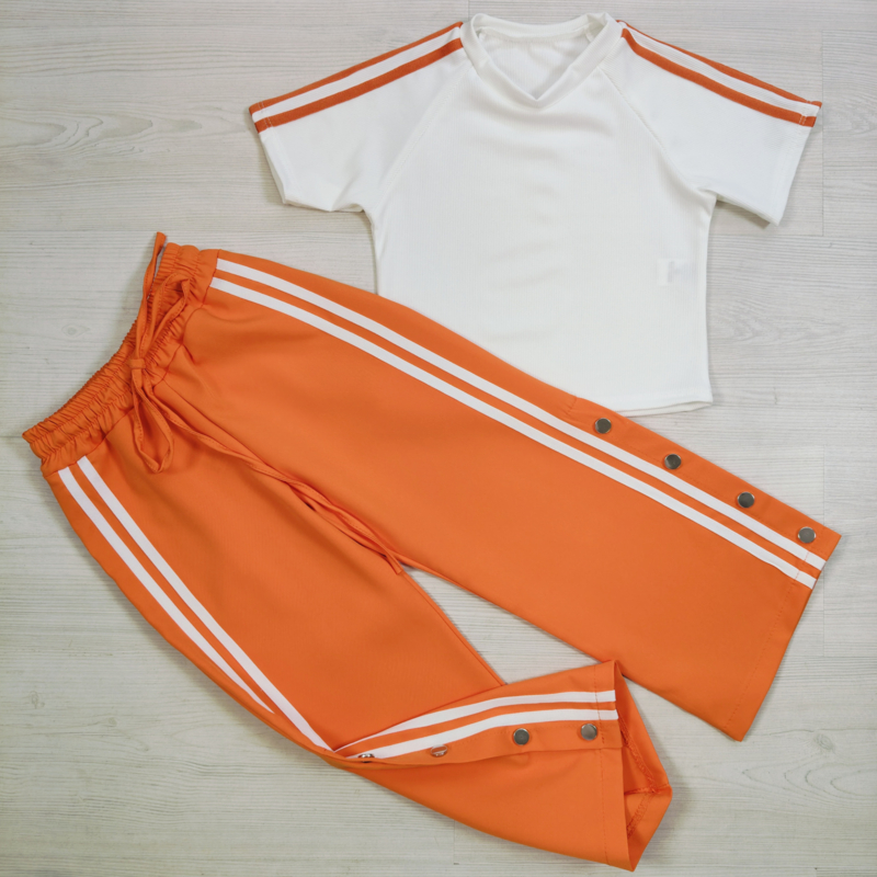 Artikelnummer: HN.70503o ww2 OverzichtDeze trendy meisjes set met wijde broek en sportieve strepen is de perfecte combinatie van comfort en stijl. De set bestaat uit een zachte top met korte mouwen en een trendy wijde broek met sportieve strepen langs de zijkant. De drukknopen aan de onderkant van de broek geven de outfit een stoere en moderne uitstraling.