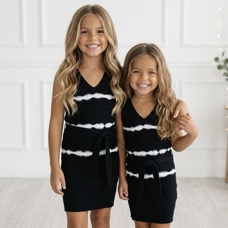 Artikelnummer: LG.YY181 OverzichtDeze stijlvolle zwarte rib jurk met contrast strepen en strikceintuur is een echte must-have voor een trendy en elegante look. De jurk heeft een moderne ribstructuur en opvallende lichte strepen die zorgen voor een speels contrast. Dankzij de diepe V-hals en de mooie aangesloten pasvorm krijgt de jurk een vrouwelijke en modieuze uitstraling.