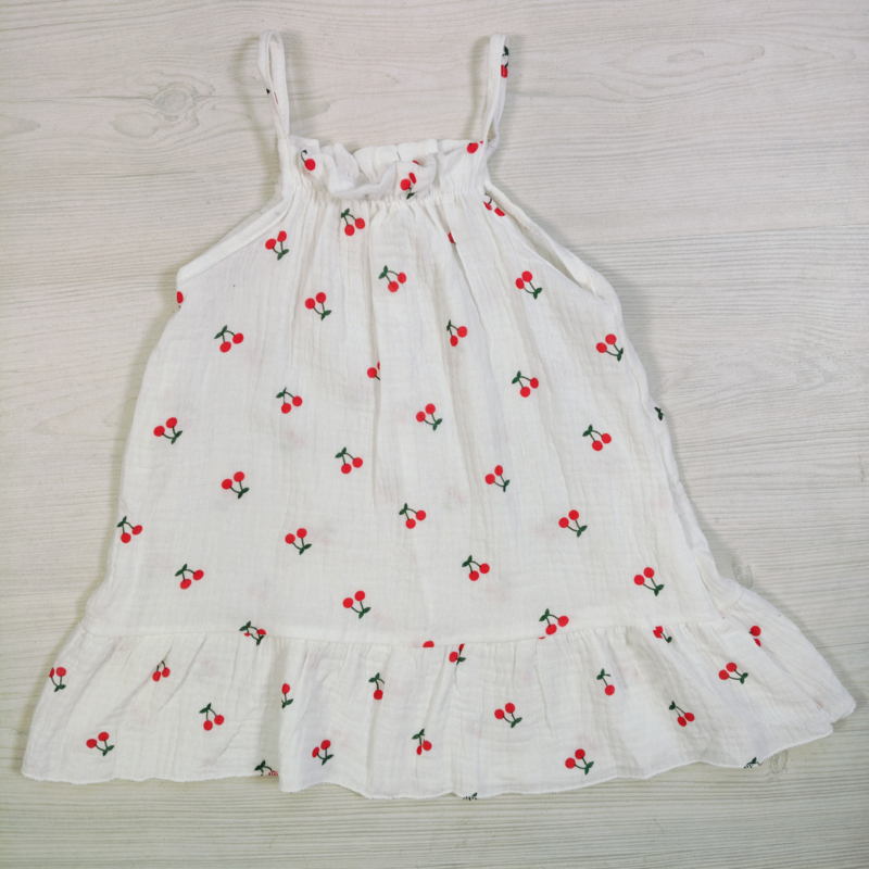 Artikelnummer: HN.1581c ww2 OverzichtDit schattige meisjesjurkje met kersenprint is perfect voor warme zomerdagen. De luchtige stof en de losse pasvorm zorgen ervoor dat het jurkje heerlijk comfortabel zit, terwijl de vrolijke rode kersjesprint een speelse en zomerse uitstraling geeft.