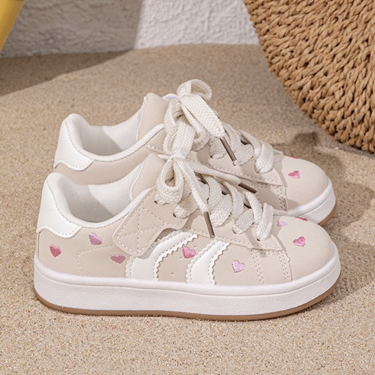 Artikelnummer: 1631r OverzichtDeze super schattige meisjes sneakers met hartjes zijn een echte must-have voor iedere outfit! De sneakers hebben een zachte beige kleur met kleine roze hartjes, wat zorgt voor een lieve en trendy look. Dankzij de stevige zool en comfortabele pasvorm zijn ze perfect voor school, spelen en dagelijkse avonturen.