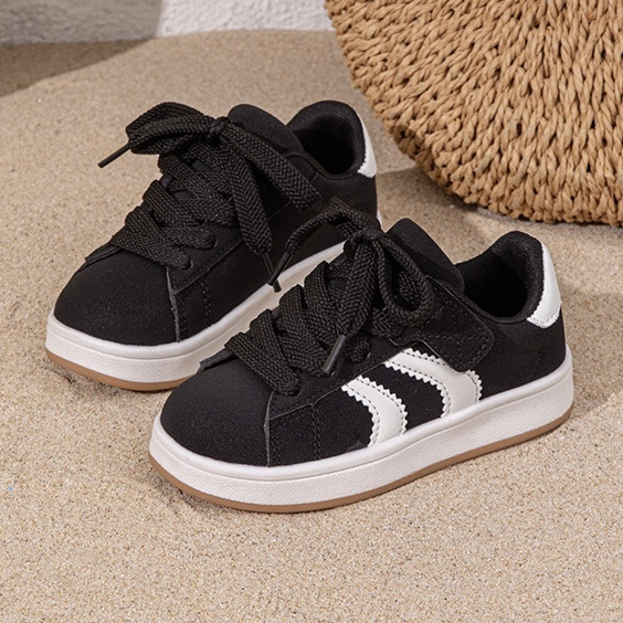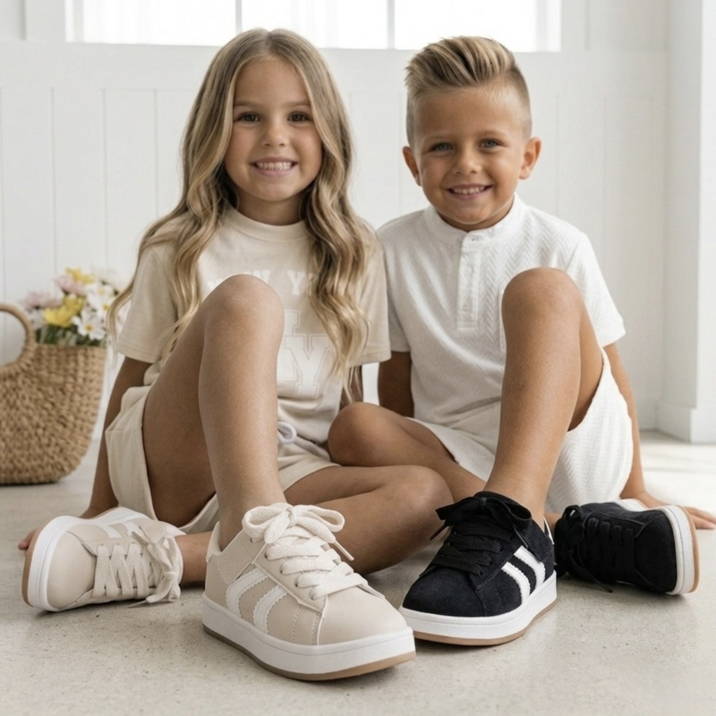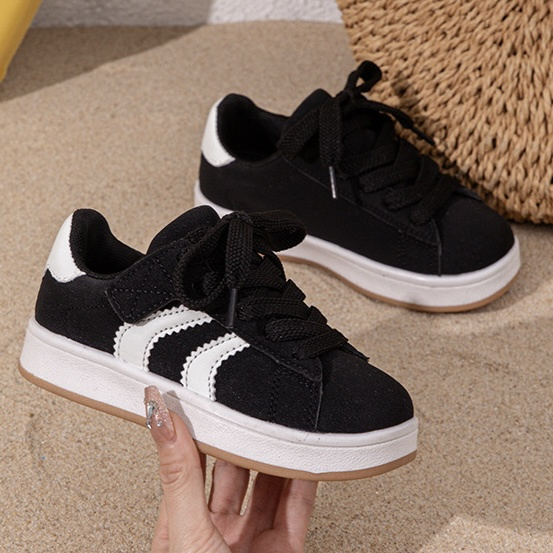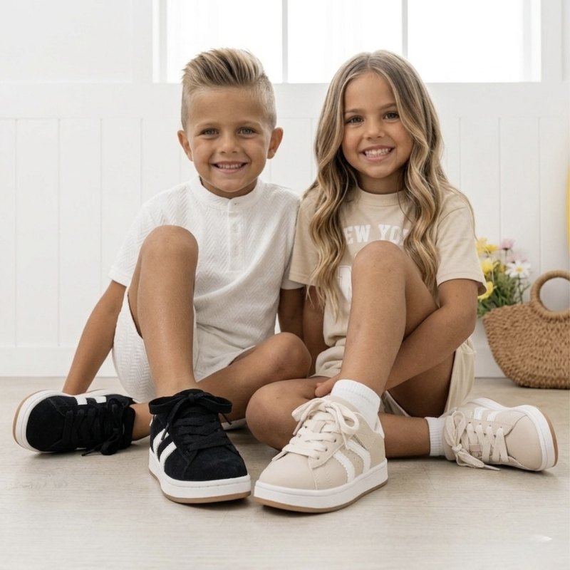 Dankzij de stevige zool en comfortabele pasvorm zijn deze kinder sneakers ideaal voor school, buitenspelen en dagelijks gebruik. De klassieke veters geven de schoenen een sportieve look en zorgen ervoor dat ze goed aansluiten aan de voet.