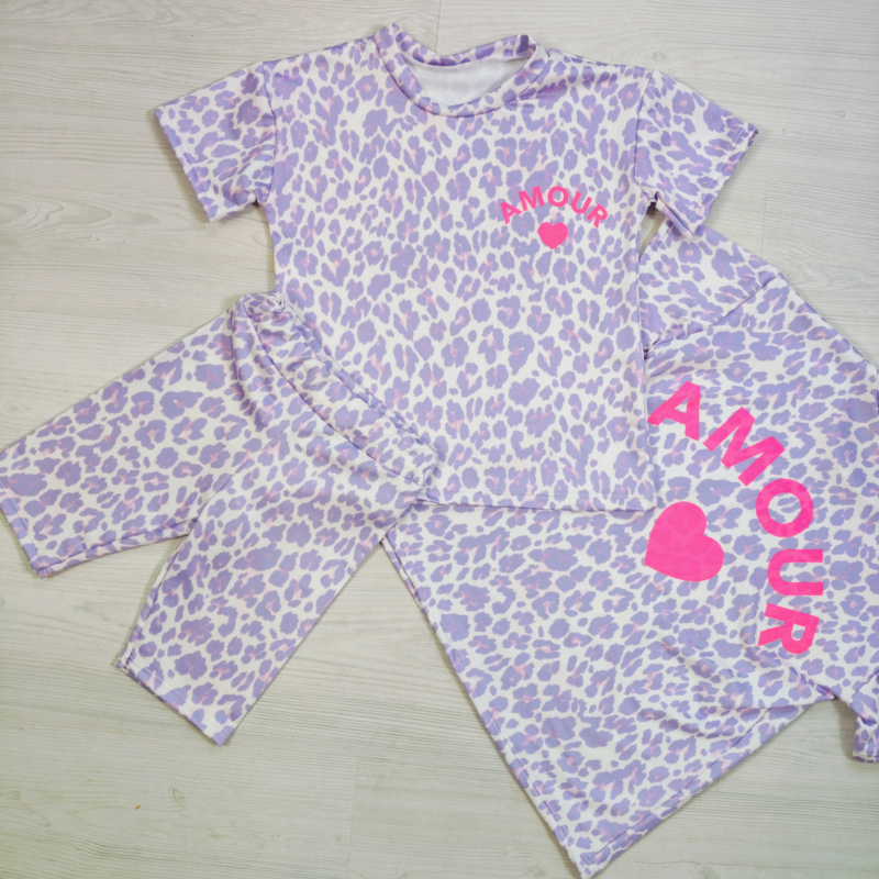 Artikelnummer: HN.70574p OverzichtDeze trendy meisjes panterprint set is perfect voor meisjes die van een stoere en fashionable look houden. De set bestaat uit een comfortabel T-shirt met een speelse AMOUR opdruk met hartje en een bijpassende short met panterprint. Op de broek komt de opvallende AMOUR print extra mooi naar voren, wat de outfit een unieke en trendy uitstraling geeft.