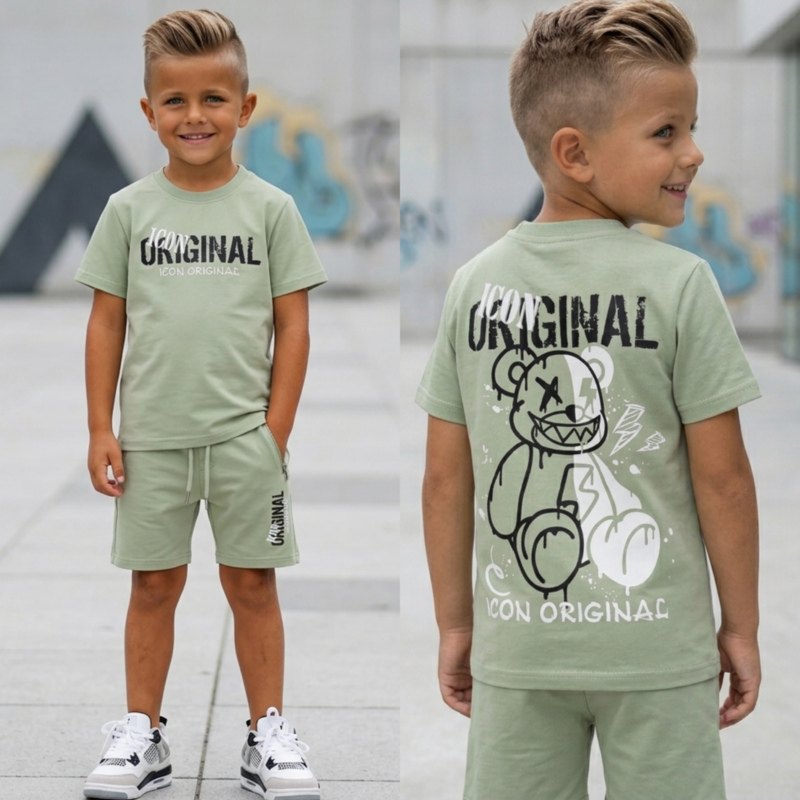 De blouse heeft een knoopsluiting, een borstzakje en een relaxte pasvorm, waardoor de set zowel casual als netjes gedragen kan worden. De short is voorzien van een elastische tailleband met trekkoord en een handige ritszak, ideaal voor actieve kids die er tegelijkertijd stijlvol uit willen zien.