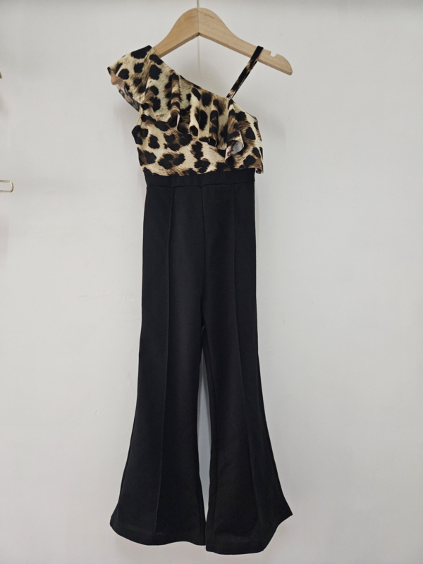 Artikelnummer: LG.jumplola ww1 OverzichtDeze meisjes jumpsuit met panterprint is dé perfecte mix van stoer, trendy en chic. De speelse one-shoulder top met ruffle detail geeft de outfit een echte fashion look, terwijl de high waist flared broek zorgt voor een mooie pasvorm en extra flair.