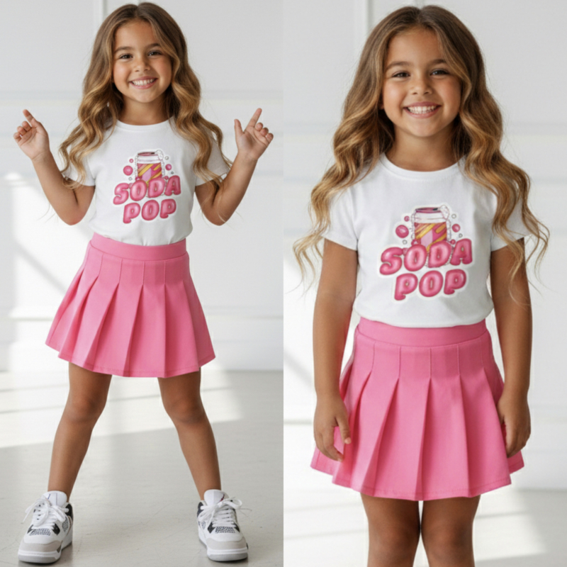 Artikelnummer: HN.3345soda ww1 OverzichtDeze Soda Pop rok set voor meisjes is dé perfecte zomeroutfit voor kleine fashionista’s. Het witte t-shirt met kleurrijke soda print gecombineerd met de felroze plooirok zorgt voor een frisse, trendy en super girly look.