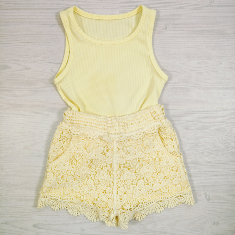 Rib Tank Lace Shorts Set - geel (verzenddatum 24 apr)