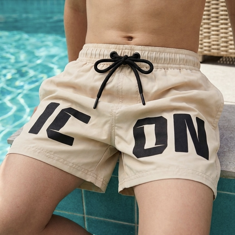 Artikelnummer: 1653be OverzichtDeze stoere #icon zwemshort in beige is dé musthave voor jongens deze zomer! De short heeft een sportieve en trendy uitstraling dankzij de opvallende zwarte #icon print op beide pijpen. Perfect voor een dagje strand, zwembad of gewoon casual dragen tijdens warme dagen.