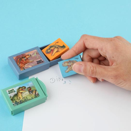 Artikelnummer: 13382 OverzichtAbracadabra! Het Dino World gumdoosje heeft een coole ingebouwde truc: als je het doosje normaal opent, lijkt hij leeg. Maar als je het linker zijpaneel een beetje omhoog duwt, verschijnt er plotseling een gekleurde gum met een afbeelding van een dino. Verkrijgbaar in twee kleuren: groen en blauw.