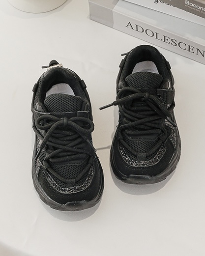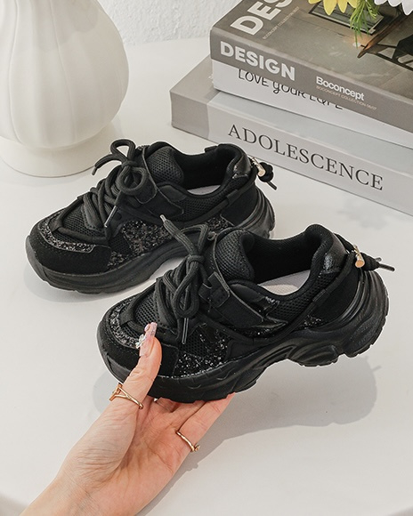 Artikelnummer: 1802z OverzichtDeze zwarte glitter sneakers voor meisjes zijn perfect voor een stoere én trendy look. De sneakers hebben een chunky zool en zijn afgewerkt met subtiele glitterdetails die zorgen voor een speelse sparkle. Dankzij de all black kleur zijn deze meisjessneakers makkelijk te combineren met iedere outfit, van een casual jeans tot een jurkje of setje.