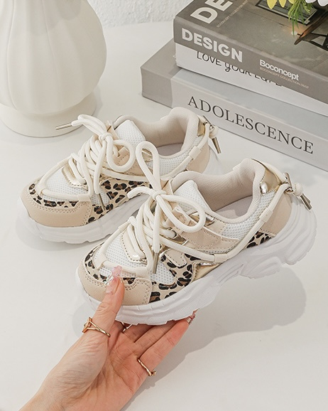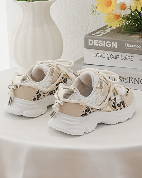 Artikelnummer: 1802l OverzichtDeze beige panter sneakers voor meisjes zijn dé perfecte mix van trendy en stoer. De sneakers hebben een modieuze chunky zool en zijn afgewerkt met opvallende panterdetails die iedere outfit meteen een fashionable touch geven. De combinatie van beige, wit en subtiele gouden accenten zorgt voor een frisse en speelse uitstraling.