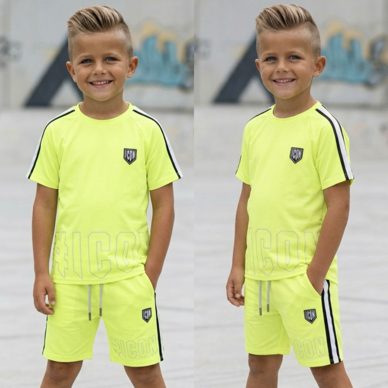 Artikelnummer: 1025-5 OverzichtMet dit neon gele jongens setje van Icon steelt elke jongen de show! De opvallende fluor kleur zorgt voor een echte eye-catching look, perfect voor kids die graag opvallen.