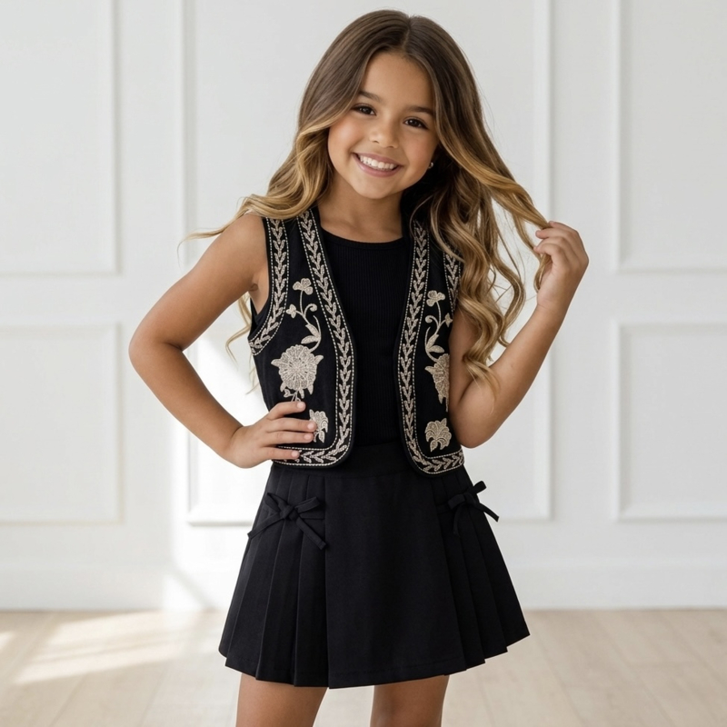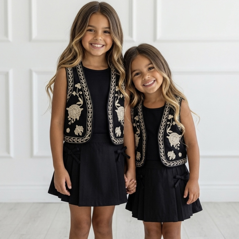 Geef iedere outfit een vleugje boho-chic met deze prachtige geborduurde hesjes! Verkrijgbaar in zwart, denimblauw en wit, zodat er altijd een kleur is die past bij de stijl van jouw kindje.