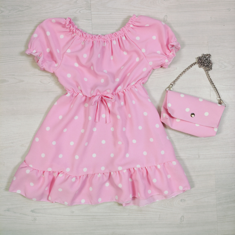 Polka Dot Girls Dress with Bag - roze