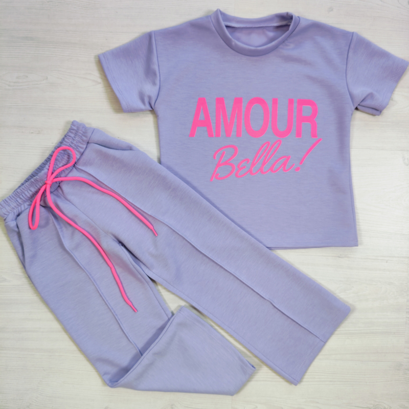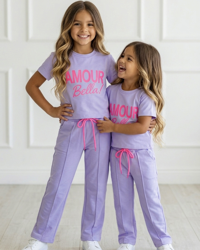 De combinatie van de rustige basis kleur met de felle “Amour Bella” opdruk geeft deze outfit een echte fashion uitstraling. Ideaal voor zowel een dagje chillen als een casual outfit naar school of buiten.