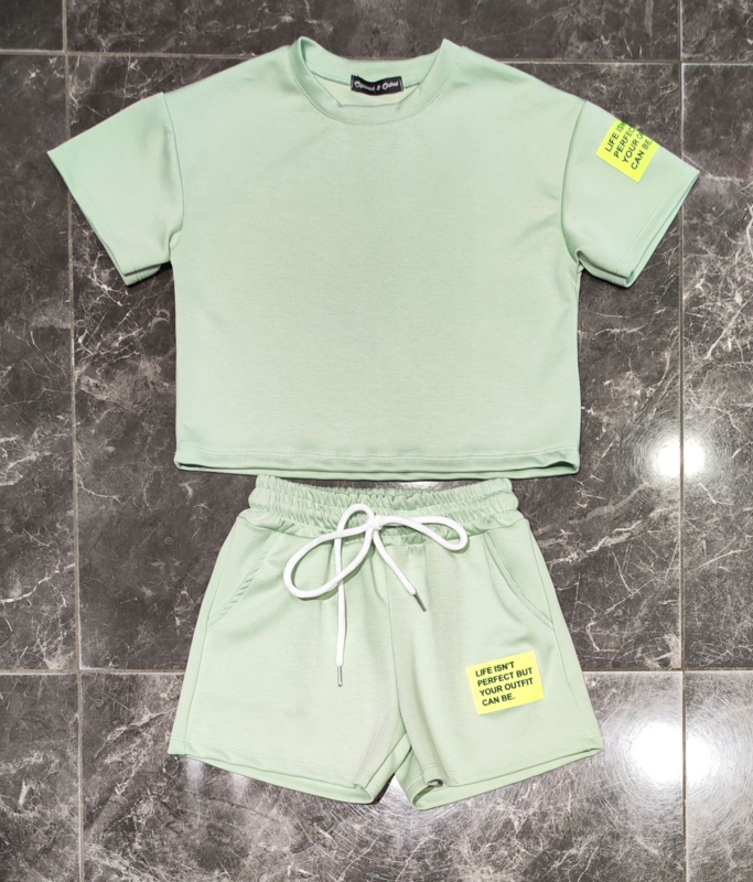 Artikelnummer: HN.26063m ww1 OverzichtFris, sporty en super comfy! Deze mintgroene 2-delige zomerset voor meisjes is perfect voor zonnige dagen. De set bestaat uit een cropped T-shirt met korte mouwen en een bijpassende short met elastische tailleband en aantrekkoord, waardoor hij heerlijk zit én makkelijk aan en uit gaat.