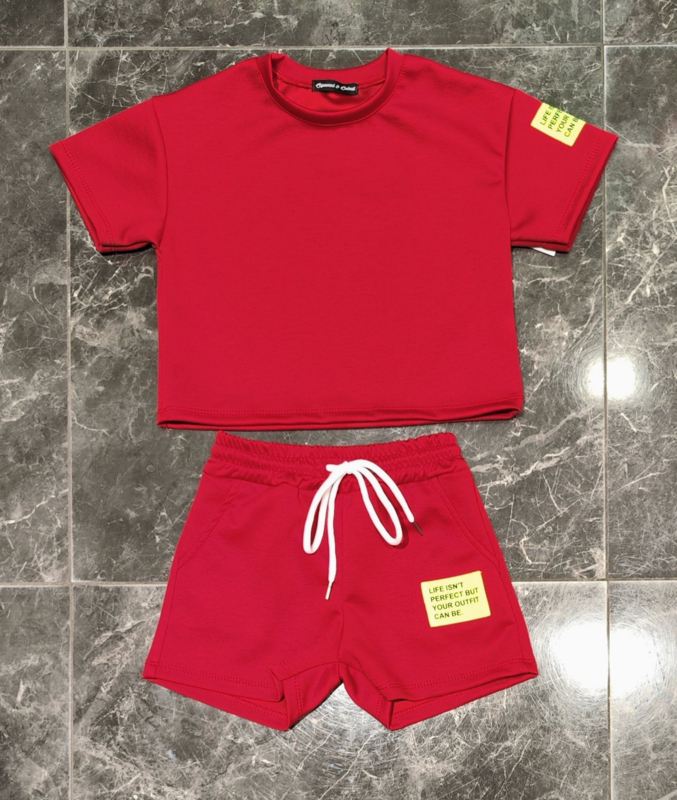 Artikelnummer: HN. 26063ro ww1 OverzichtOp zoek naar een echte eyecatcher voor de zomer? Deze rode meisjes sweatset steelt gegarandeerd de show! De 2-delige set bestaat uit een cropped T-shirt met korte mouwen en een bijpassende short met elastische tailleband en aantrekkoord voor ultiem draagcomfort.