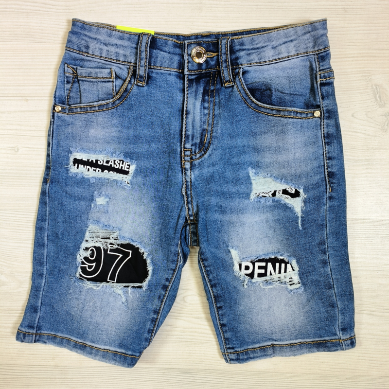 Artikelnummer: 1225 OverzichtSuper stoere blauwe distressed korte spijkerbroek voor de jongens in maat 98-104 t/m 146-152