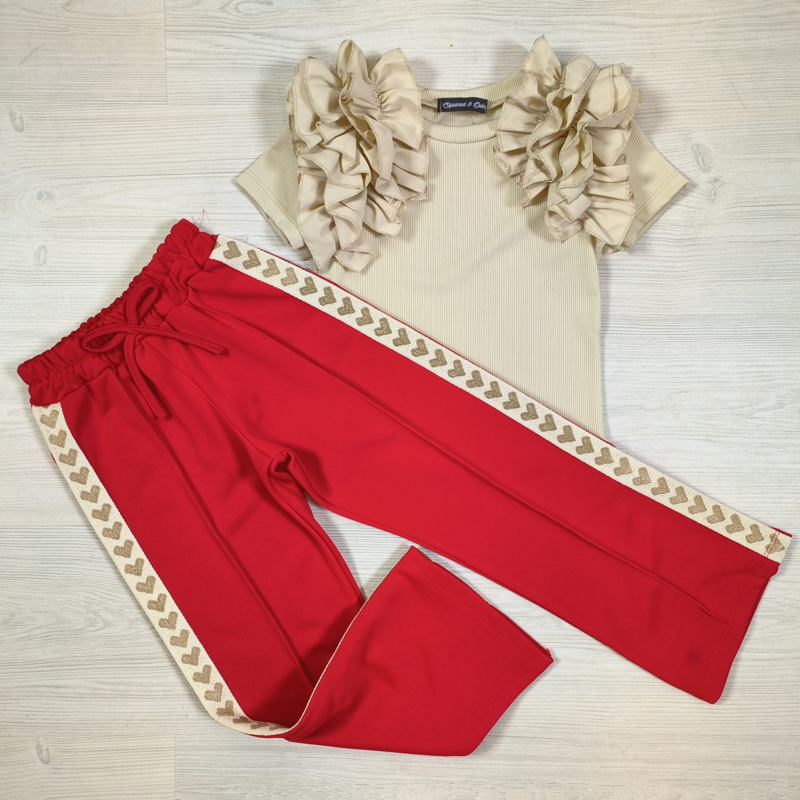 Beige heart pants - rood