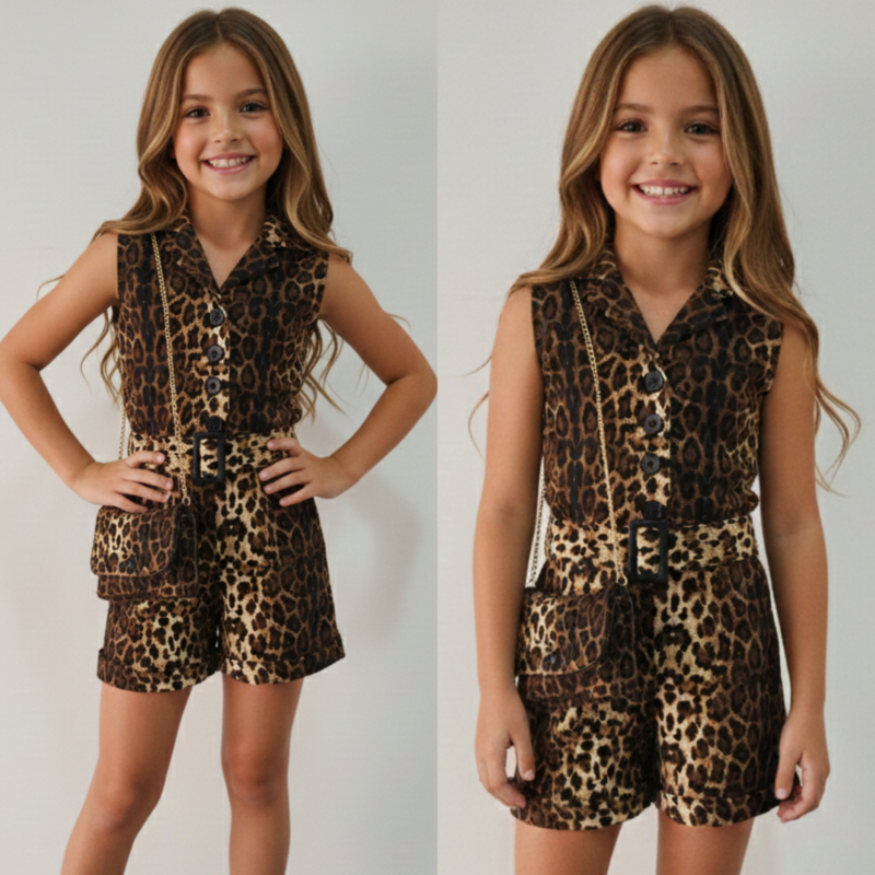 Deze meisjes leopard playsuit is een echte eyecatcher voor stijlvolle meiden! De trendy leopard print geeft een stoere én fashionable uitstraling, terwijl de mouwloze top en luchtige short zorgen voor een comfortabele…