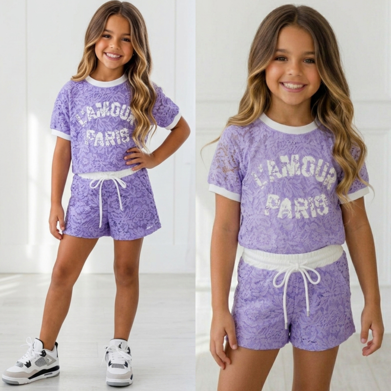 Rib Tank Lace Shorts Set - roze€ 32,95