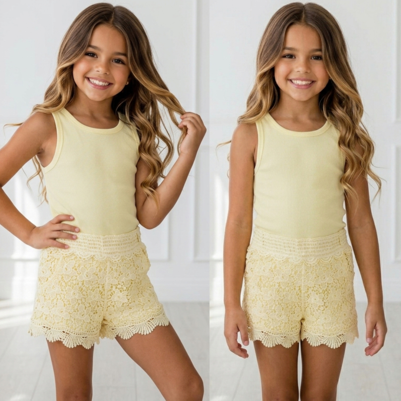 Rib Tank Lace Shorts Set - geel€ 32,95