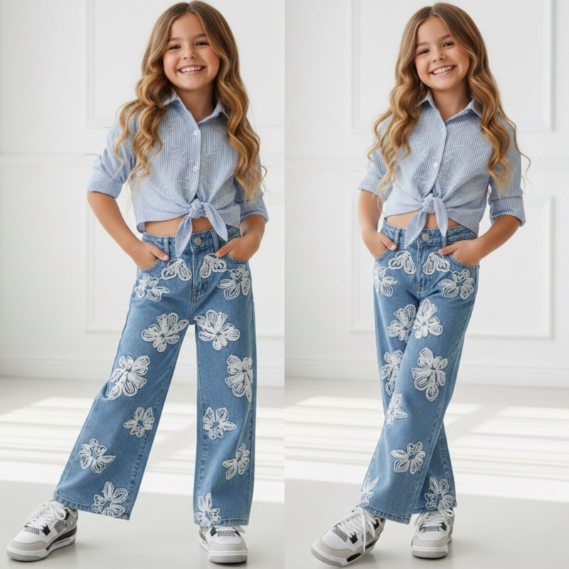 Op zoek naar een stoere én trendy spijkerbroek voor meisjes? Bij Hippe Beebjes vind je een ruime collectie meisjes jeans in maat 98/104 t/m 158/164, perfect voor school, spelen en speciale momenten. Van wide leg jeans tot straight fit en mom fit modellen, en van subtiele wassingen tot opvallende prints en borduursels — hier shop je altijd een jeans met nét dat beetje extra.